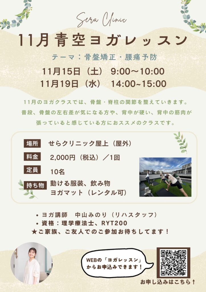 \★骨盤矯正・腰痛予防 11月ヨガレッスン開催のお知らせ/